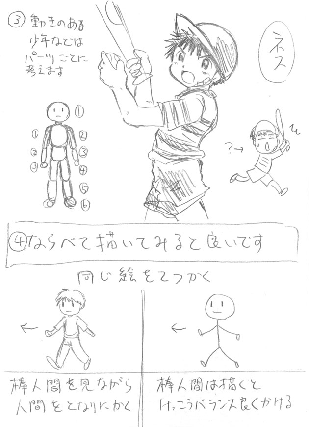 ただし、この二つを感覚や頭で覚えるまでは、ただの○や棒人間のみでキャラクターを描いてみるのをオススメします。